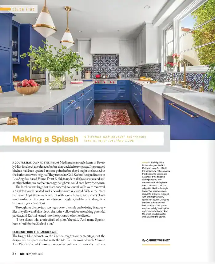 When a family in L.A. needed much-improved floor plans for the kitchen and bathroom spaces in their home, they sought out Goli Karimi, director of design at Home Front Build. Read the full article on Kitchen & Bath Business Magazine.