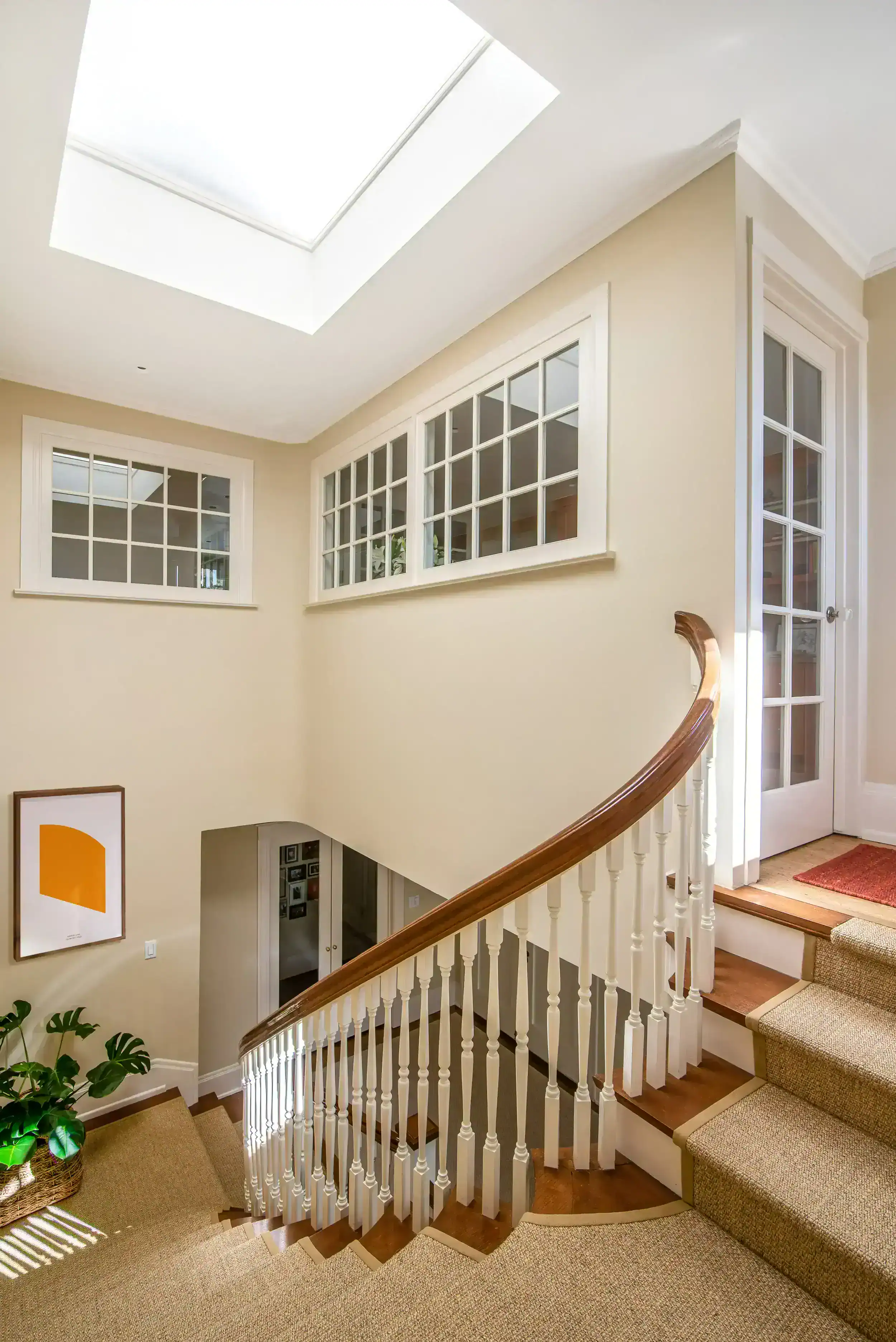 The family called on Steve Pallrand, founder of Home Front Build, a design-build company that specializes in environmentally responsible remodels. “Turning the existing attic space into her own separate home was essentially a tiny house project, which is all about living beautifully and efficiently in a small space,” Pallrand says. “The main challenges were working within the limitations of the existing parameters, and how to create this separate living area without impeding on the home’s grandeur.”